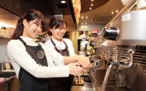 タリーズの制服は開業当初から黒エプロン着用のスタイルです。エプロン以外はダークカラーであれば自由にコーディネート可能ということもあって、おしゃれを楽しみたい方には人気です。エプロンも黒というシックでおしゃれなエプロンですので、白のエプロンと合わせてモノトーンコーデをしてみたり、あえて黒でまとめたりなど、落ち着いて見られるスタイルになります。